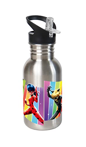 P:os 29337 – Miraculous vattenflaska för barn, vattenflaska med integrerat sugrör, ca 430 ml kapacitet, läckagesäker, för skola, sport och fritid