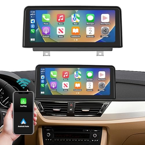 Ninetom 10,25 tum pekskärm bilradio med trådlös Carplay och Android Auto för BMW X1 Series E84 2009–2015 utan OEM-skärm, stöd för Mirrorlink, musik, navigering