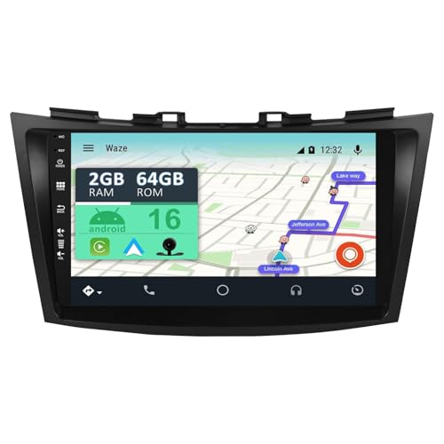 YUNTX Android 12 2 Din bilstereo Fit för Suzuki Swift/Ertiga (2008-2017)- 9 tums Pekskärm - 2G+32G - Stöder GPS/DAB/Ratt Kontroll/WiFi/Bluetooth 5.0/USB/CarPlay/Mirrorlink