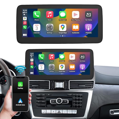 Ninetom Wireless Carplay Android Auto Decoder Retrofit Kit för 2011-2015 Mercedes Benz A/B/C/GLK/GLA/GLC/GLS/ML/GL/SLK/E/G/V Class med NTG4.5/4.7, Stöder Mirrorlink, Navigation, Siri, kamera
