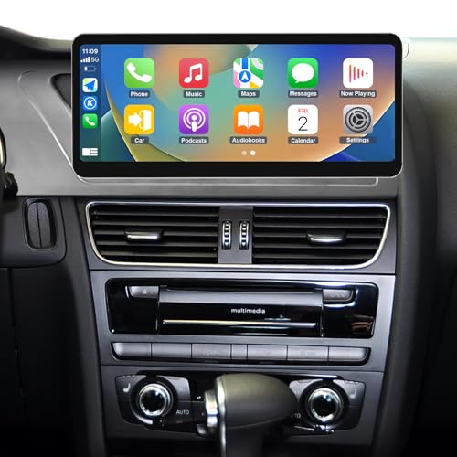 Road Top 8,9 tums bilradio trådlös CarPlay pekskärm för Audi A5 2009-2015 år med 3GMMI, bilradio stereo multimedia skärm, stöd för trådlös Android Auto, navigering, Mirrorlink