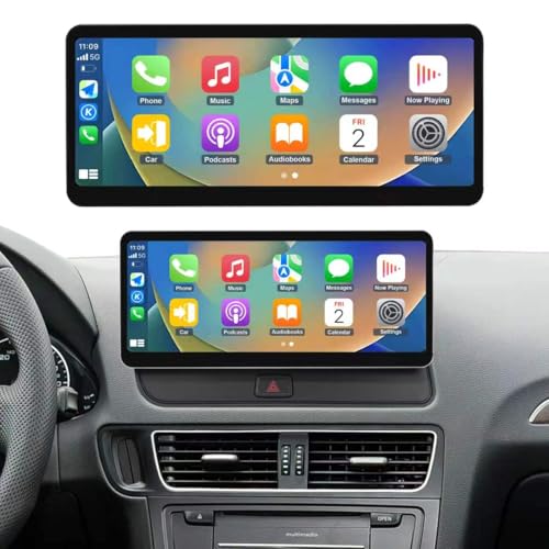 Road Top 12,3 tums bilradio trådlös CarPlay-pekskärm för Audi Q5 2009-2017 år med 3GMMI, bilradio stereo multimedia skärm, stöd för trådlös Android Auto, navigering, Mirrorlink