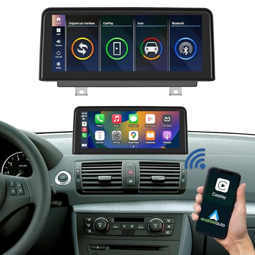 Ninetom 10,25 tums pekskärm för bilradio för 2008-2012 BMW 1-serien E81 E82 E87 E88 med CIC-system, stöd för Apple CarPlay/Android Auto/Mirrorlink/Navigation, bilstereouppgradering