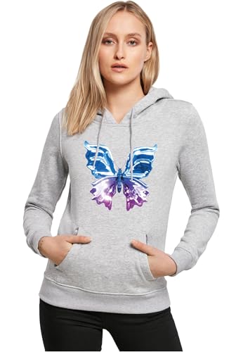 Miss Tee Huvtröja för kvinnor, Chromed Butterfly Hoody, avslappnad huvtröja med framtryck, normal passform, storlekar XS – 5XL, Grå ljung, M