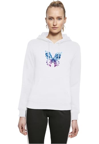 Miss Tee Huvtröja för kvinnor, Chromed Butterfly Hoody, avslappnad huvtröja med framtryck, normal passform, storlekar XS – 5XL, Vit, S