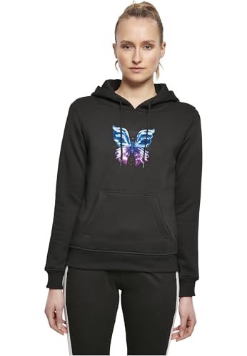 Miss Tee Huvtröja för kvinnor, Chromed Butterfly Hoody, avslappnad huvtröja med framtryck, normal passform, storlekar XS – 5XL, svart, XS