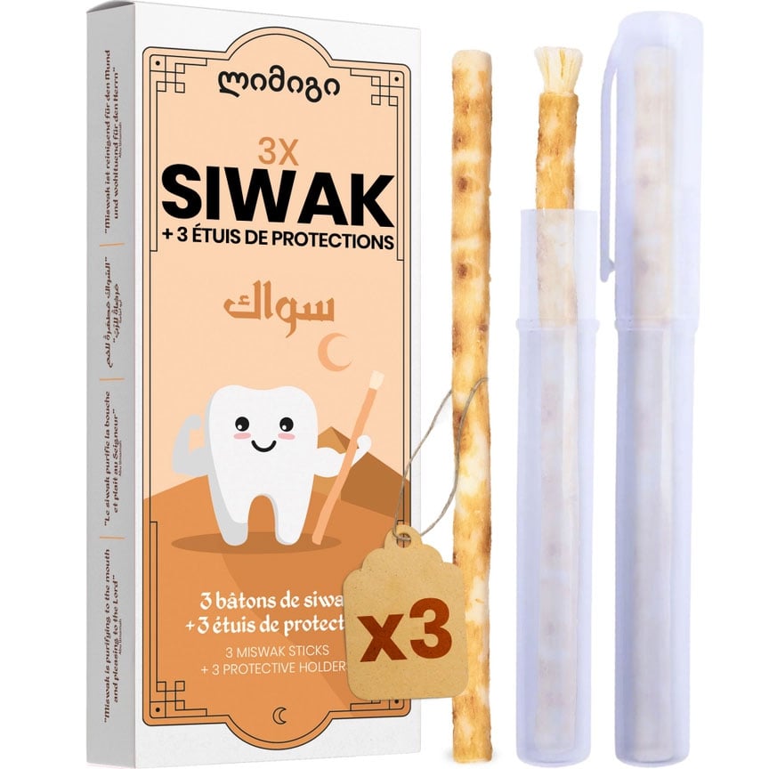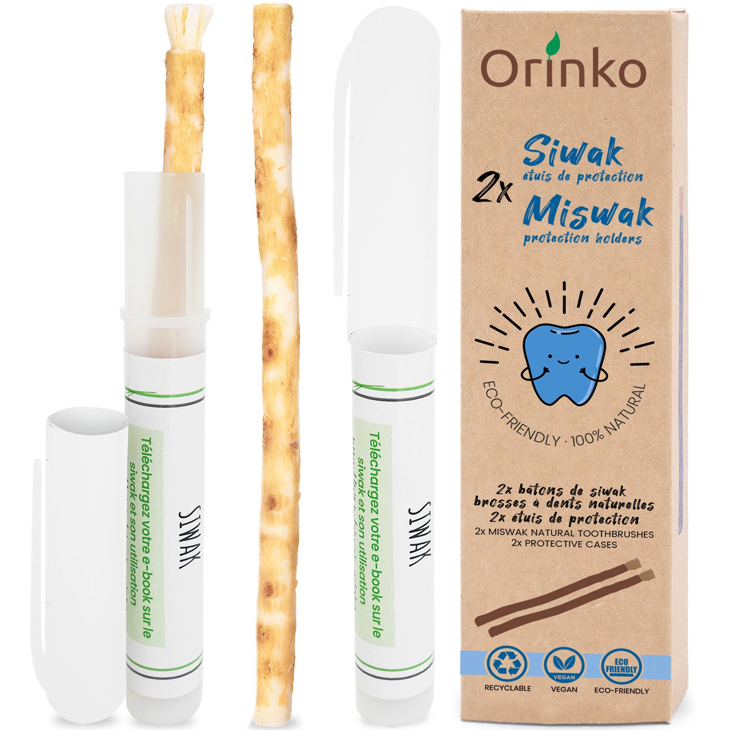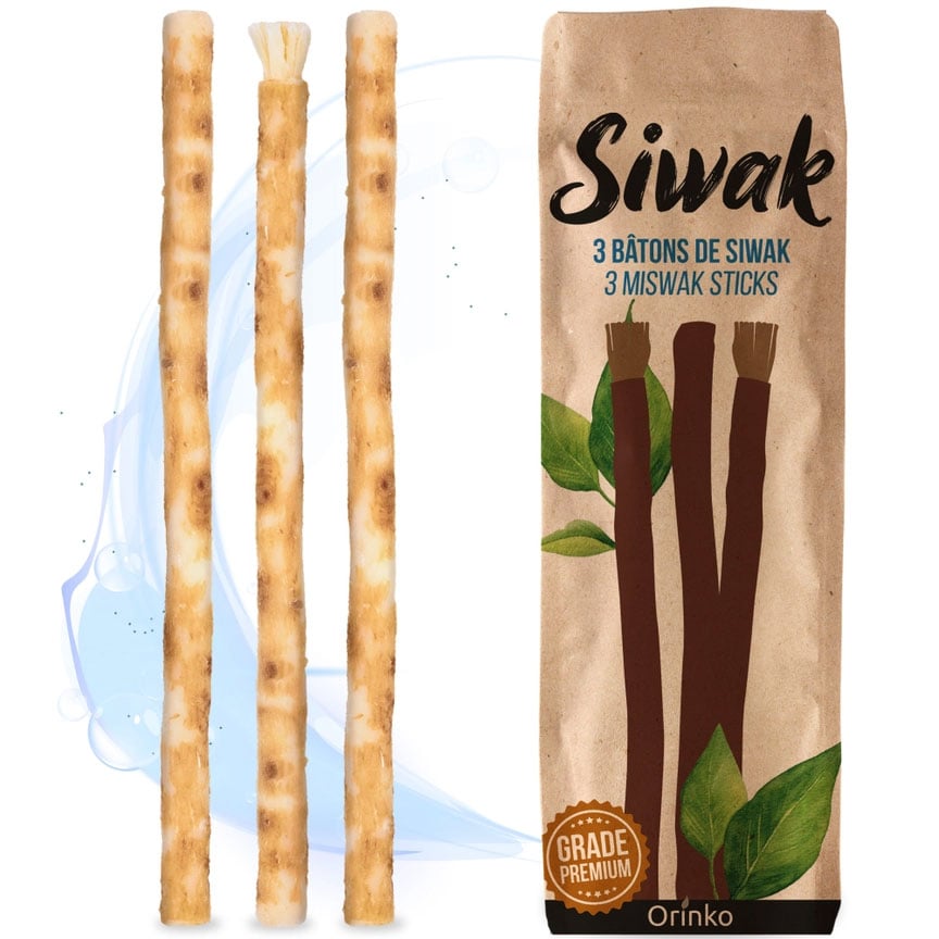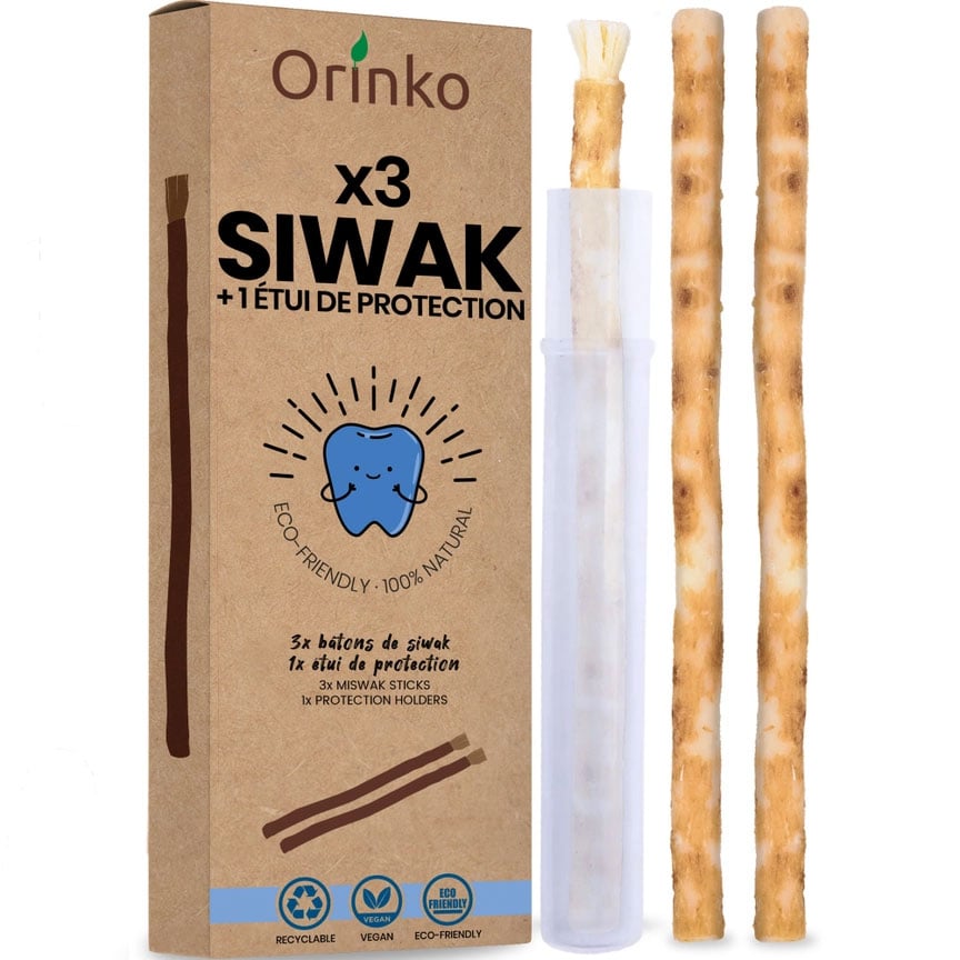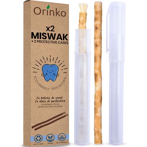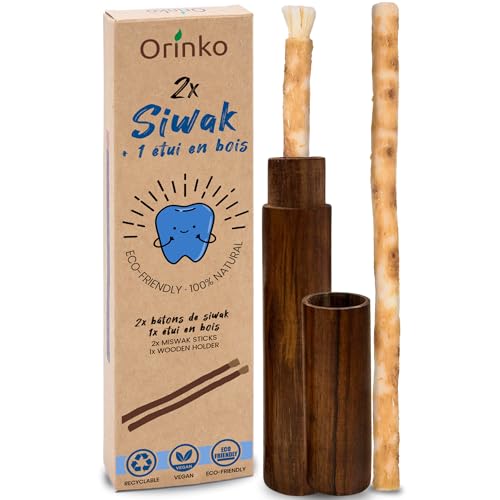 ORINKO 2 Siwak stavar + 1 träfodral – Miswak-tandborste naturlig, miljövänlig och vegansk – traditionell munvård och tandblekning
