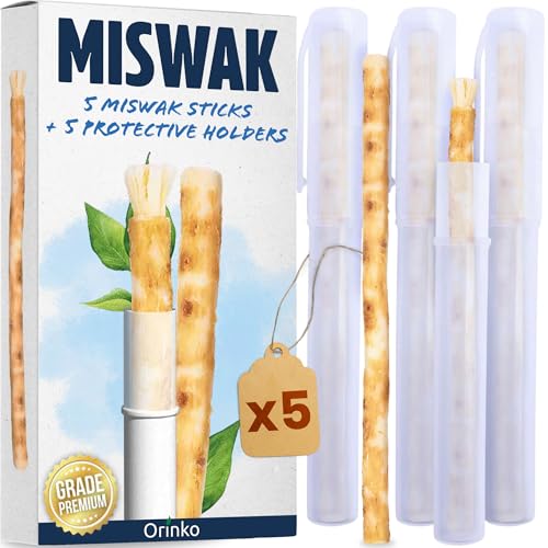 ORINKO 5 Siwak Sticks 5 skyddsfodral – Miswak naturlig tandborste miljövänlig och vegansk – traditionell munvård och tandblekning