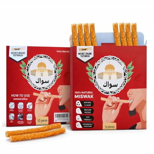 Miswak pinnar för tänder | Sewak naturlig tandborste | Siwak organisk trä tandborste orala tandblekning med hållare | vakuumförseglad (10-pack)