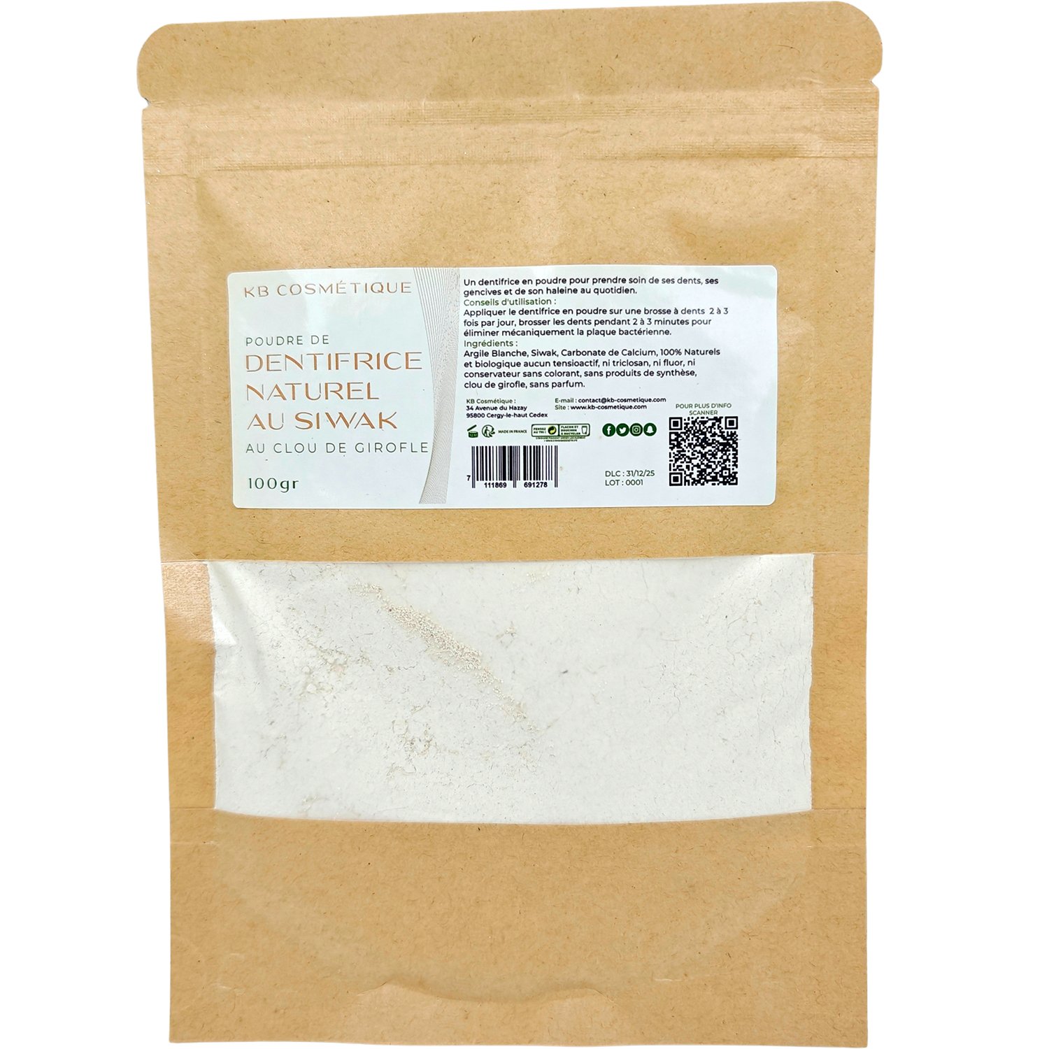 Miswak Tandkräm Pulver KB COSMETIQUE Poudre de Dentifrice Naturel au Siwak - Clove (refill 100 g)