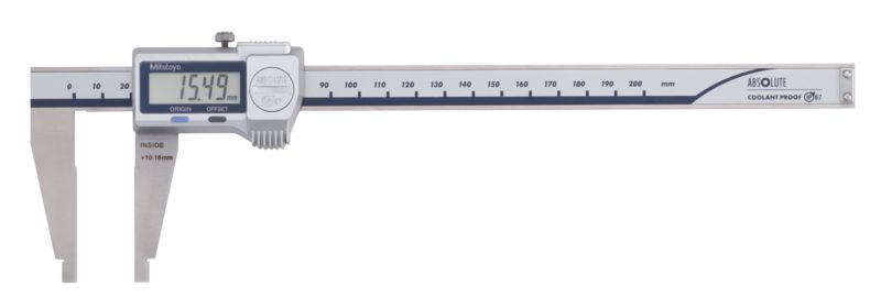 Mitutoyo ABSOLUTE Digimatic Skjutmått 500-724-20 CoolantProof 0-200mm, 0,01mm hårdmetallbel. skänklar, plan sticka, IP67, friktionsrulle, datautgång