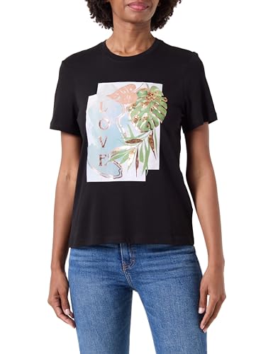ONLY Onlkita Reg S/S Mix Top Box Cs JRS Ex. T-shirt, Svart/tryck: leaf love, M