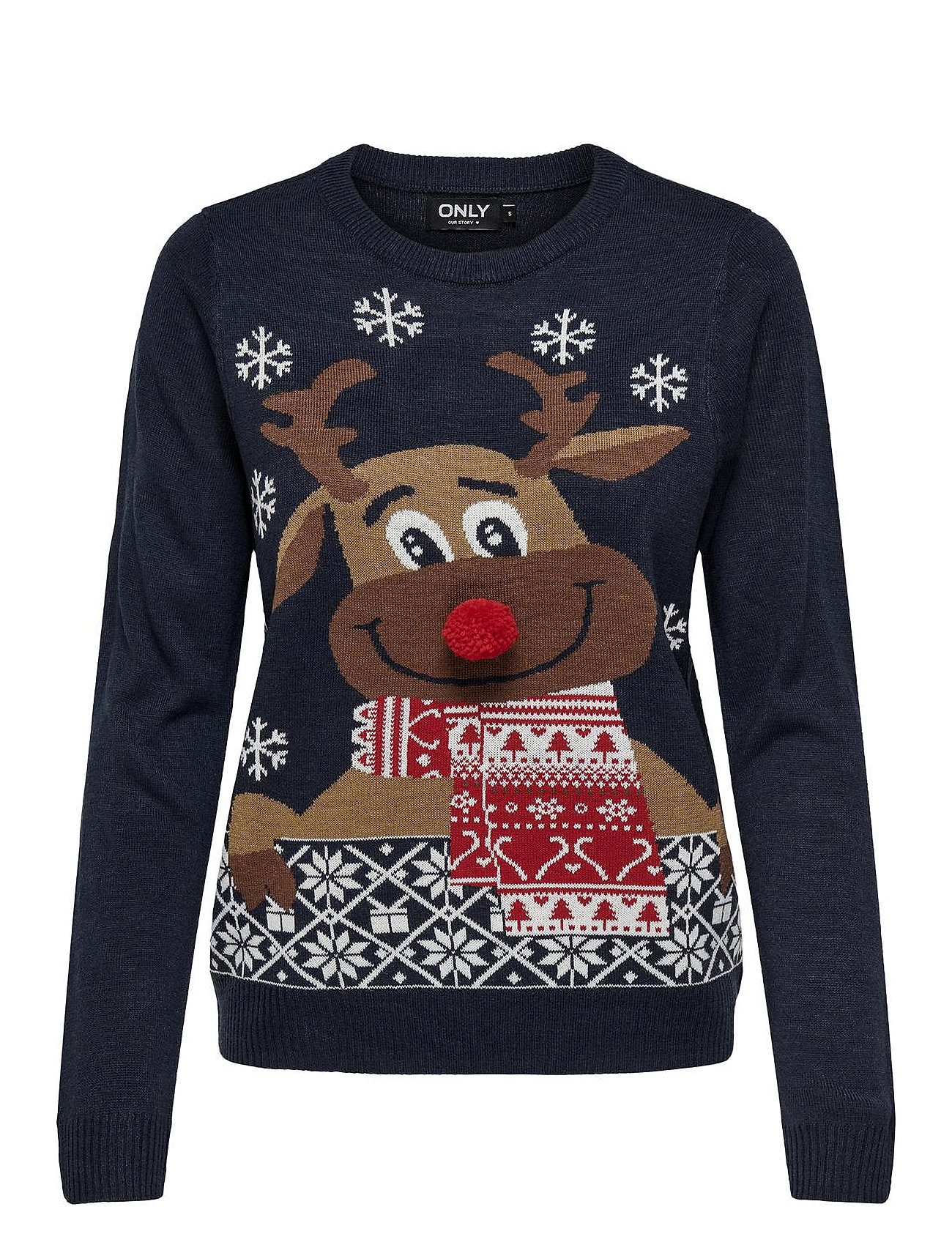 ONLY Onlxmas Ls O-Neck Mix Detail Box Knt Marinblå