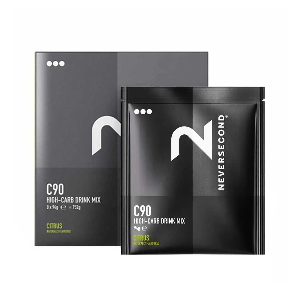 Neversecond C90 High-carb Mix Energy Gels Box Citric 94g 8 Units Silver