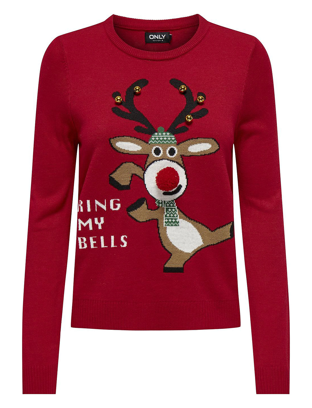 ONLY Onlxmas Ls O-Neck Mix Detail Box Knt Röd