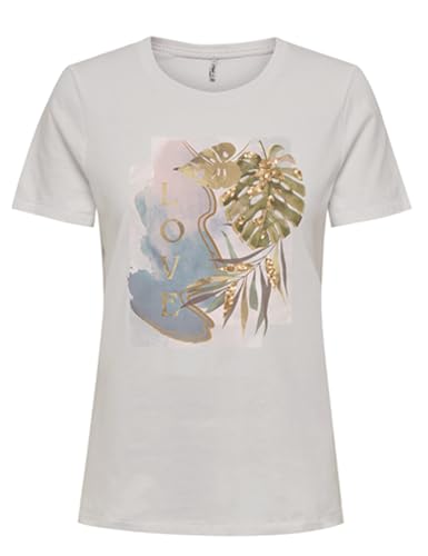 ONLY Onlkita Reg S/S Mix Top Box Cs JRS Ex. T-shirt, Cloud Dancer/tryck: leaf Love, S