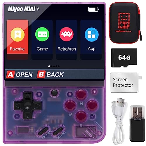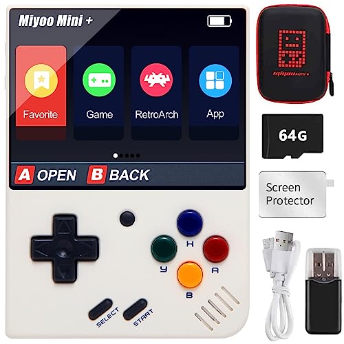 Bärbar spelkonsol för Miyoo Mini Plus med förvaringsfodral, 3,5" bärbar retrovideo-emulator med öppen källkod. Inbyggda 64G TF-kort och mer än 1 0000 spel, stöder WiFi