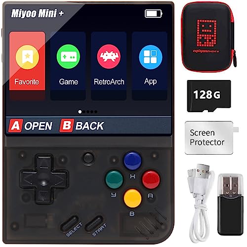 Miyoo Mini Plus handhållen spelkonsol med förvaringsväska, 3,5 tums öppen källa, retrospelkonsol, inbyggt 128 G TF-kort och 15 000 + klassiska spel, stöder WiFi
