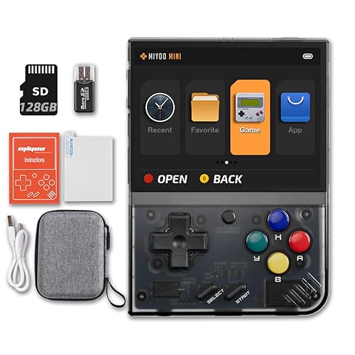 Miyoo Mini Plus 3,5 tum handhållen spelkonsol med bärbart fodral transparent svart 128 GB