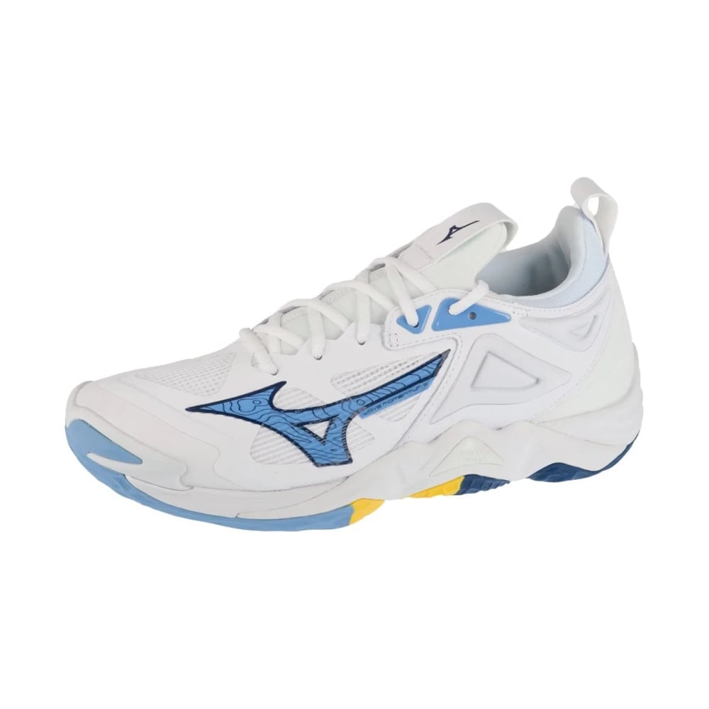 Mizuno Wave Momentum 2 | Volleybollskor för inomhusbruk för kvinnor, vit/marinblå, 43