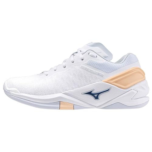 Mizuno Shoe Wave Stealth Neo Wos, unisex, vuxna, Vit/marinblå Peony Peach Parfait, 36 EU