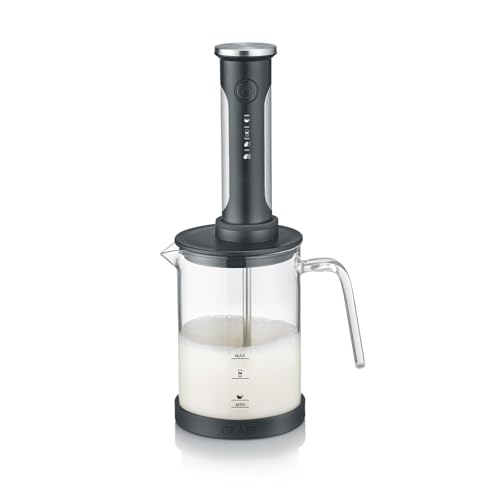 GRAEF Trådlös mjölkskummare MS202EU svart, omrörning, skumning och blandning, mjölkkanna i glas, enkel intuitiv enknappsdrift, 4 funktioner, lätt att använda med en knapp