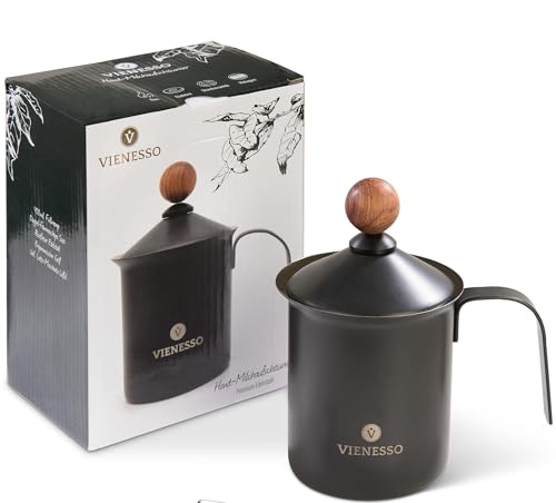 VIENESSO Mjölkskummare (manuell/hand) av rostfritt stål – Milk Frother/mjölkskummare med dubbelsil: producerar krämigt mjölkskum för kaffespecialiteter, inklusive barista e-bok (400 ml)