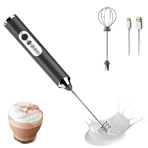Hixava Lätt elektrisk visp, bärbar elektrisk mjölkskummare, 2-i-1 elektrisk mjölkskummare med uppladdningsbar USB, 3 hastigheter, med 2 omrörningshuvuden, för matcha-kaffe, latte, cappuccino, ägg