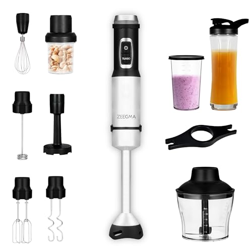 ZEEGMA mobiltelefon NUTTIG multifunktionell handmixer 11-i-1 effekt 1 500 W toppset: för smoothie för puré dokumentförstörare kvarn drickflaska visp knådningskrok mjölkskummare mixer
