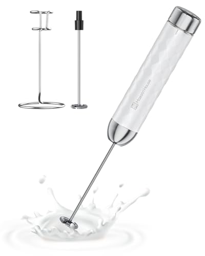 HAUSHOF Kraftfull uppladdningsbar mjölkskummare med stativ, handhållen elektrisk kaffevisp för rikt skum, kaffeblandare med rostfritt stål visp för kaffelatte, cappuccino, matcha, grön