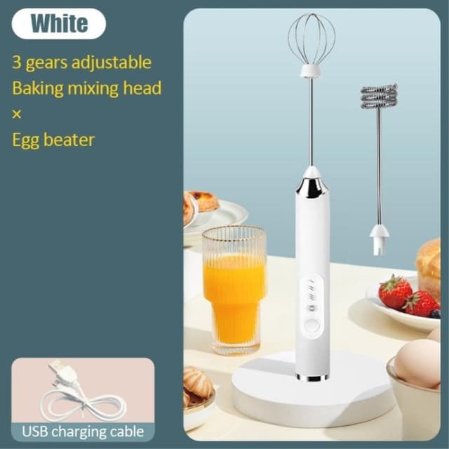 Mjölkskummare Automatisk mjölkskum ÄggVisp Uppladdningsbar Vit