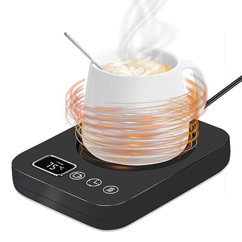MIAOKE smart muggvärmare med 3 temperaturinställningar, 4 H automatisk på/av, värmeunderlägg, tevärmare, mjölkvärmare för kontor och hem - svart