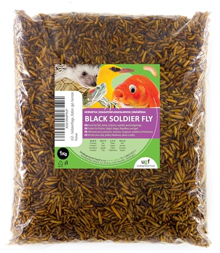 UGF – Soldatfluglarver Hermetia (1 kg) – 85 gånger mer kalcium än levande mjölmaskar – BSFL fågelmat vilda fåglar året runt, foder för sköldpaddor, råttor, igelkott, hamstrar