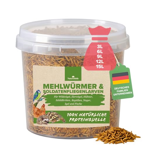SUPERWURM 10 liter torkade mjölmaskar - torkade insekter - matsnacks för fisk, vilda fåglar, igelkott, vaktel, hamster, perfekt igelkottfoder, fågelmat