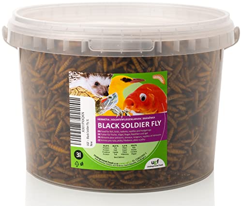 UGF – Hermetia bättre än torkade mjölmaskar (3 liter - 430g) – 85 gånger mer kalcium än levande mjölmaskar – BSFL-godsaker för vilda fåglar, sköldpaddor, råttor, igelkottar, hamstrar – soldatlarver