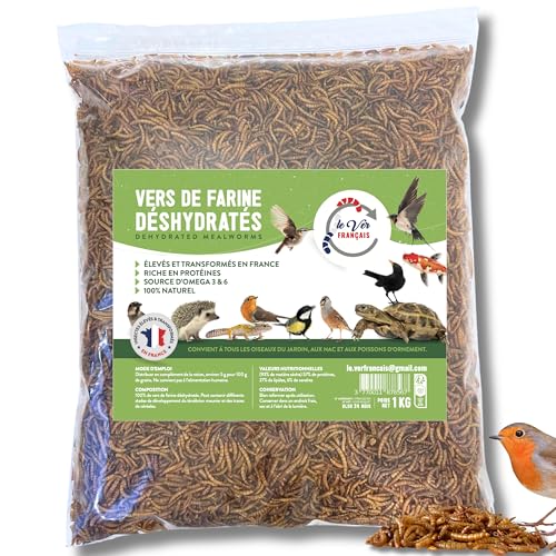 torkade mjölmaskar uppfödda i Frankrike, proteinrik 55 % - godis för fåglar, fiskar, igelkottar, reptiler, gnagare, sköldpaddor - fodertillskott för djur 100 % naturligt (1 kg)