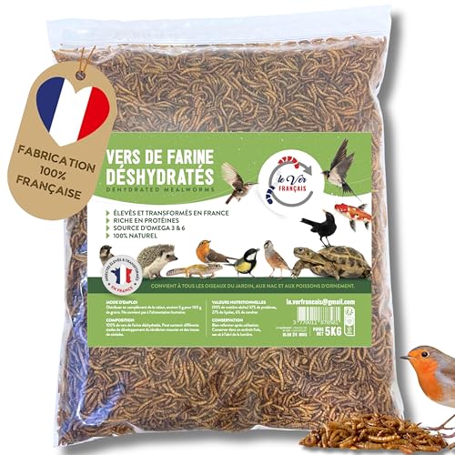 mjölmaskar för höns, fåglar, hamster, reptiler - torkade och uppfödda i Frankrike - proteinrik 55 % - fodertillskott för djur 100 % naturligt (5 kg)