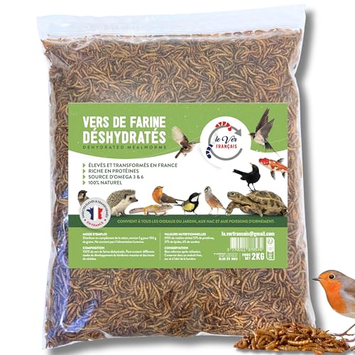 mjölmaskar för höns, fåglar, hamster, reptiler - torkade och uppfödda i Frankrike - proteinrik 55 % - fodertillskott för djur 100 % naturligt (2kg)