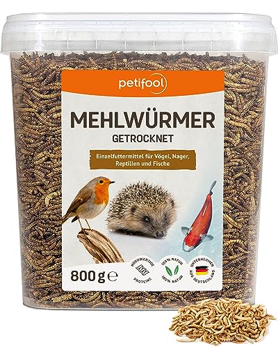 petifool Mögelmaskar 800 g – torkade mjölmaskar – hälsosamt insektsmellanmål för sköldpaddor, fiskar, fåglar, reptiler och gnagare