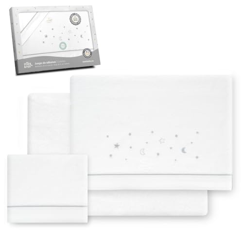 Interbaby Set med lakan spjälsäng 60 x 120% bomull, 100% bomull, flanell, varm, mjuk spjälsäng, säng, inkluderar underlakan, bänkskiva och örngott, perfekt för vintern, stjärnor måne vit/grå