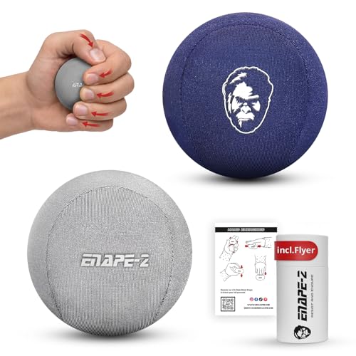 enape® stressbollar | Uppsättning av 2 stressbollar för vuxna och barn | Antistressboll i snygg låda med minimalistisk design | mjuk och medelhård boll (Grå & marinblå)