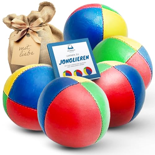 Hjältengott jongleringsbollar set om 5 – professionella beanbags & bollar för barn – skicklighetsspel vuxna och nybörjare – mjuk boll med bok