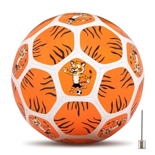 Fotboll för barn I Fotboll storlek 3 I Lätt bambanoll med tigermotiv I robust I mjuk boll från 3 o. 4 år I barns födelsedag gästgåva I utomhusleksak I med kulnål