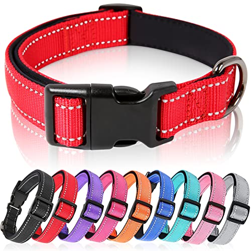 HEELE Hundhalsband, Reflekterande Nylon Hundkrage, Halsband för Hund Justerbar med Mjuk Neopren Vadderad, Halsband för Små Hundar, Röd, S