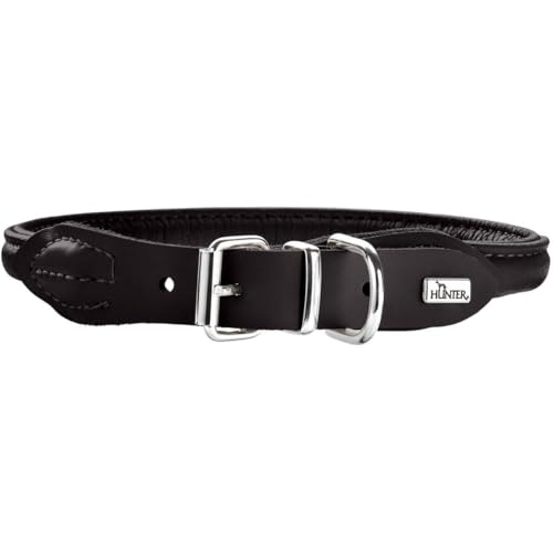 Hunter rund och mjuk älg läder hundkrage, svart, justeringar 41-46 cm