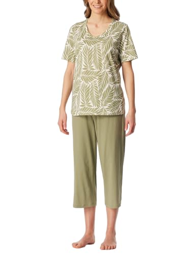 Schiesser Dam pyjamas kort set 3/4 långa byxor kortärmad topp mjuk bomull – nattkläder, Lind, 42