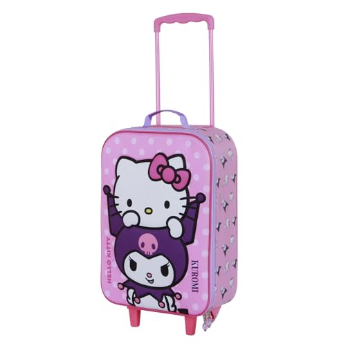 Karactermania Sanrio Hello Kitty lekfull mjuk 3D resväska med hjul, rosa, 17 x 33 x 52 cm, kapacitet 26 L, Rosa Hello Kitty, En storlek, Sanrio mjuk 3D resväska
