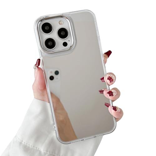 ZTOFERA Spegelfodral för iPhone 16 Pro Max, spegel för flickor, kvinnor, smink, söt glansig hård baksida + klar mjuk TPU-stötfångare smal passform stötsäkert skyddande fodral för iPhone 16 Pro Max