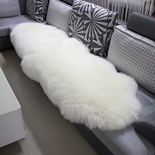 WOLTU ekologiskt lammskinn fårskinn matta, äkta naturlig päls mjuk fluffig, sängmatta soffa matta långhår, ullmatta för vardagsrum sovrum, vit, (170–180) x 55 cm
