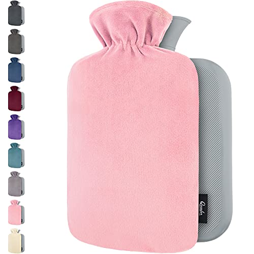 Qomfor Varmvattenflaska med skydd UK – 1,8 L stor mjuk vattenflaska med fleeceskydd – fluffig för smärtlindring, ryggsmärta, vuxna och barn – bra present till kvinnor (rosa)
